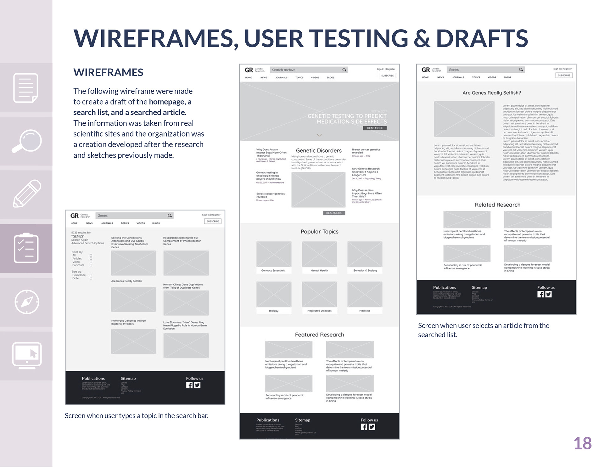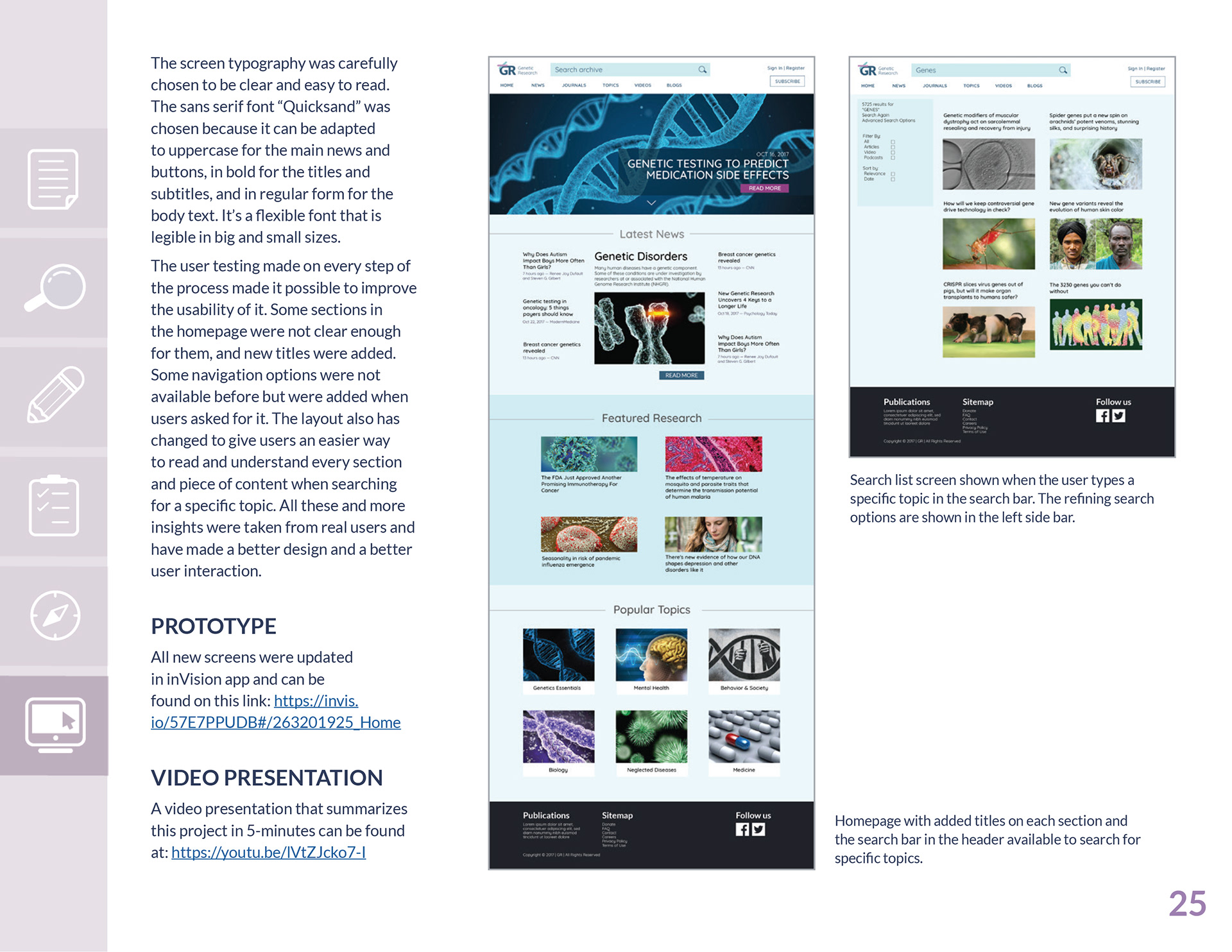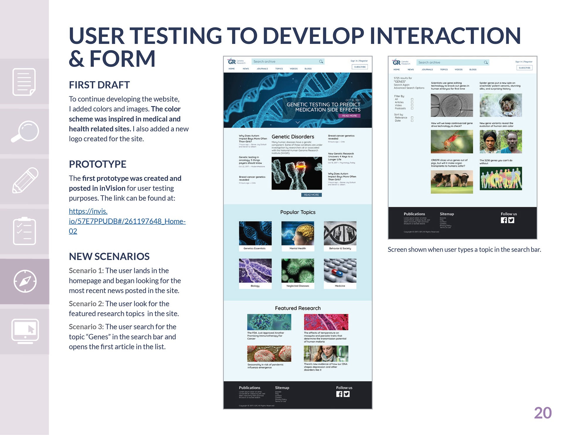 This website was created to solve information-dense research problems for genetic professionals. It has real content and it focuses on making the information accessible and easy to understand for the audience. Based on real needs and expectations of the intended audience. The prototype for this project can be found at https://invis.io/57E7PPUDB#/261197648_Home-02