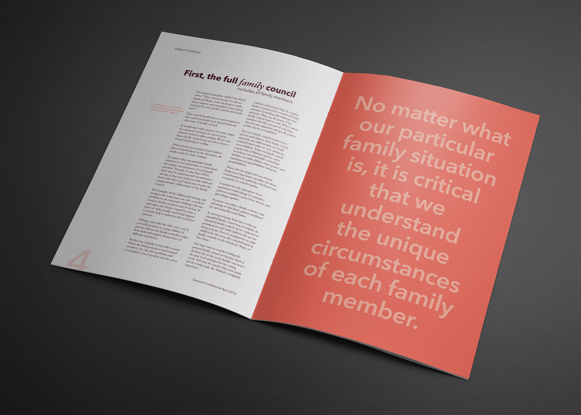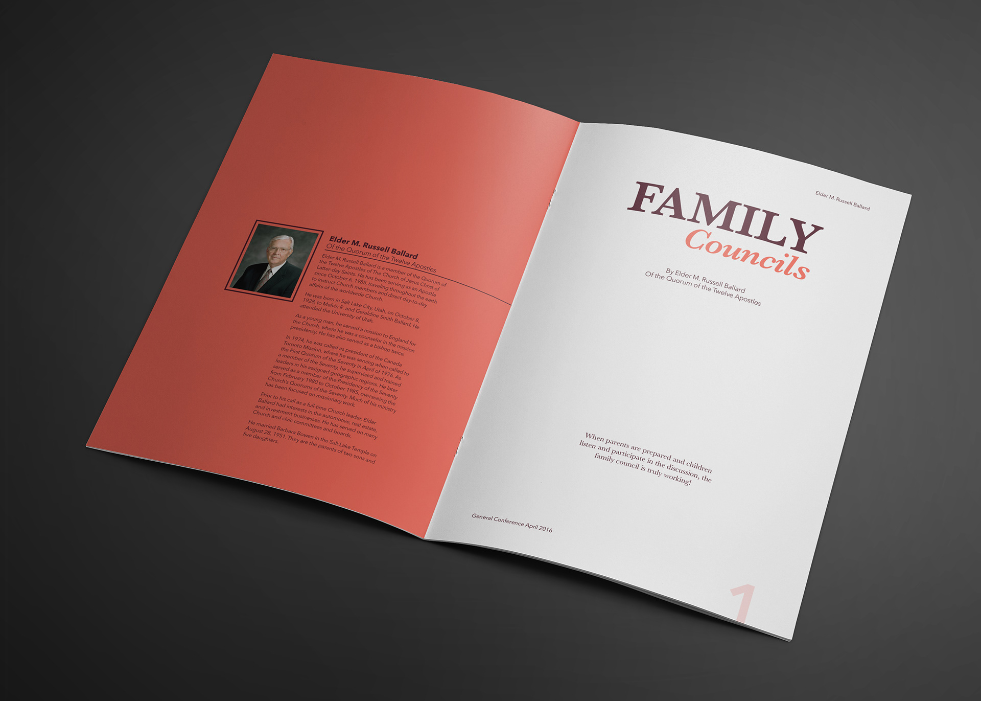 This is a multipage booklet created to become a gift for a friend. It was inspired in the April 2016 LDS General Conference. The article is "Family Councils" by Elder M. Russell Ballard.