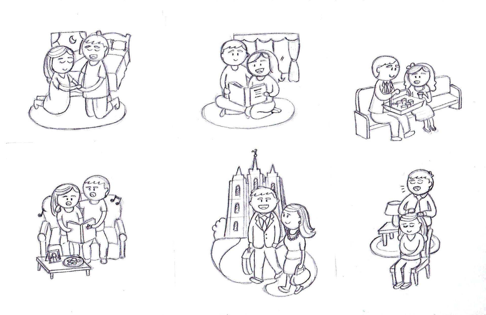 LDS family Traditions icon set was created with the purpose of reflecting the main family traditions that Latter-Day-Saint families practice in a regular basis: prayer, scriptures reading, church attendance, temple attendance, family home evening, priesthood blessings, pay tithing, watch general conference, and other important activities. My icons are inspired in my own family and how we strive to practice all these things together.