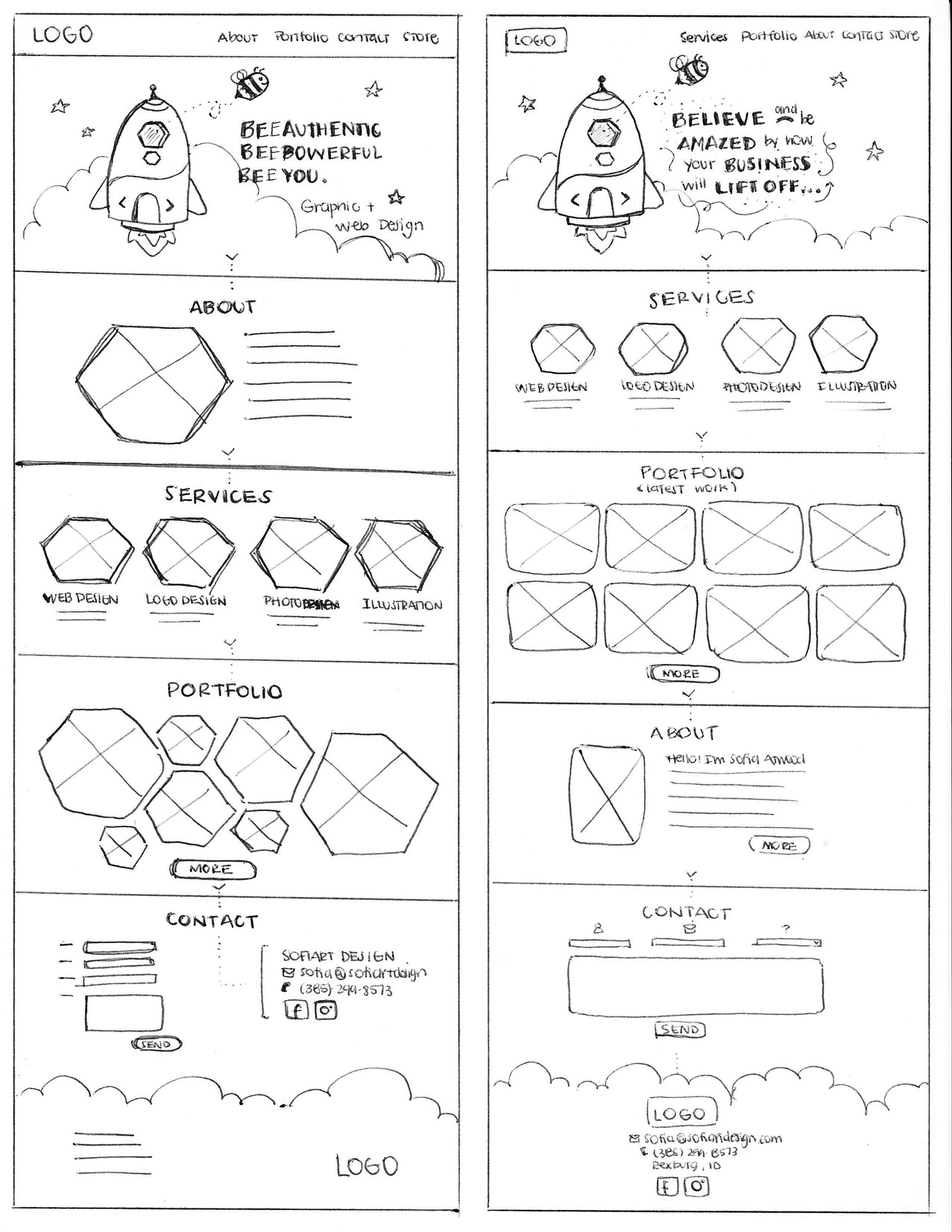 These are the first sketches created based on the previous analysis of the target audience.