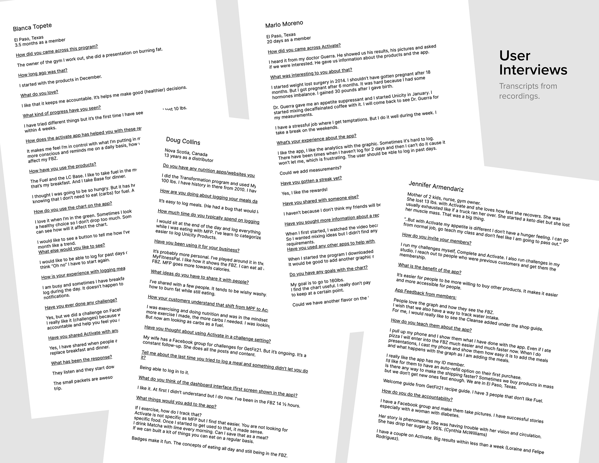 We tested the existing app with both distributors and customers. Our goal with distributors was to learn how the Activate App was useful for them and how do they believe it was helping their customers. Our goal with customers was to understand their challenges with the app and their personal goals and needs. We also gave them specific tasks to see if they were able to complete it successfully. Some of these interviews were conducted by phone calls and others in person.